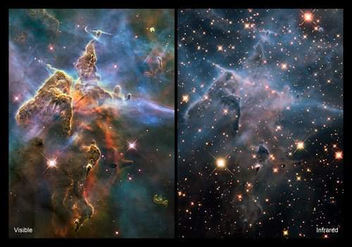 फोटो शोध सौजन्य :- गुगल , नासा ( फोटो १:- इन्फ्रारेड आणि व्हिझिबल स्पेक्ट्रम मधील फरक दर्शिवणारा फोटो. इन्फ्रारेड फोटोत आपण खूप साऱ्या गोष्टी सुस्पष्ट बघू शकतो., फोटो २ :- लाग्रांज पॉईंट एल १ ते एल ५. एल २ इकडे जेम्स वेब दुर्बीण दिसत आहे., फोटो ३:- हबल आणि जेम्स वेब दुर्बिणीच्या आरशाचे एकमेकांसोबत तुलना )